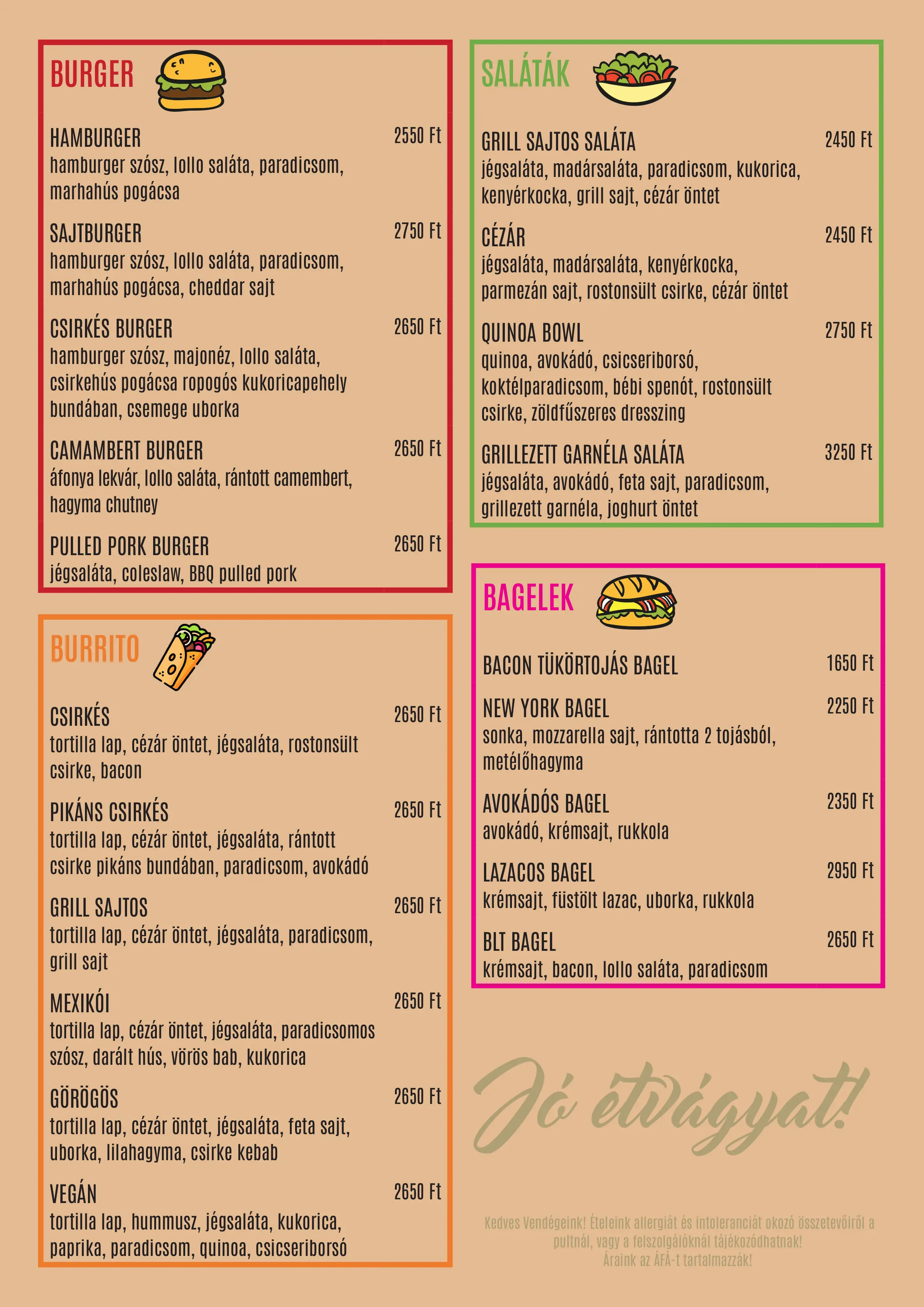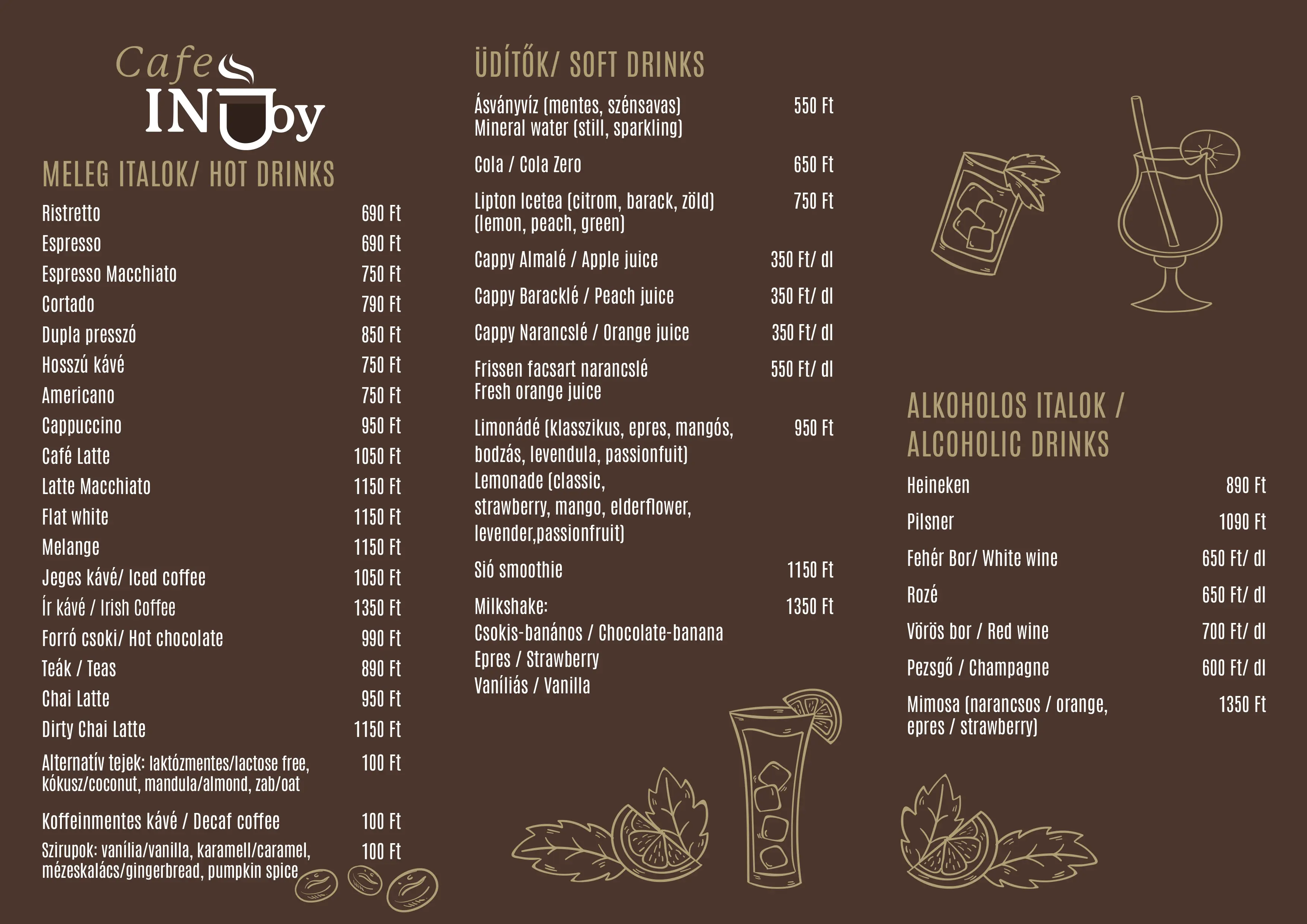 Bőséges reggeli, finom kávé, friss péksüti - hogy jól induljon a nap. Napi levesek és ebédmenük, helyben készült szendvicsek, és az elmaradhatatlan süti - hogy napközben is legyen energiánk. Délután koktélok, alkoholos italok, teák várják a hozzánk betérőket!